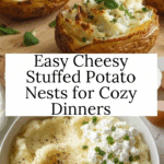 Hearty Stuffed Potato Nests are a comforting and delicious baked dish featuring tender russet potato shells filled with a creamy, flavorful mixture of mashed potato, cheddar cheese, sour cream, and fresh chives. Baked to golden perfection, these potato nests make a perfect side or satisfying vegetarian main.