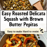 This Roasted Delicata Squash with Brown Butter is a gourmet side dish featuring tender delicata squash slices roasted to golden perfection, topped with a rich browned butter sauce infused with maple syrup, roasted garlic, and toasted pepitas. With just 9 simple ingredients and under an hour of prep and cook time, it’s ideal for elevating weeknight dinners or impressing guests with a seasonal, flavorful vegetable dish.