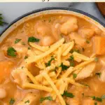 White Cheddar Apple Chicken Chili is a comforting and unique twist on traditional chili, combining tender rotisserie chicken, sweet apples, creamy white cheddar, and cannellini beans. This creamy, mildly spiced chili melds smoky chili powder and cumin with the natural sweetness of apples and the richness of half & half, creating a thick, hearty dish perfect for cozy dinners.