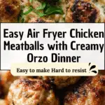 These Air Fryer Chicken Meatballs with Creamy Orzo offer a flavorful and easy-to-make meal featuring juicy chicken meatballs cooked to perfection in the air fryer, paired with a rich, creamy orzo tossed with fresh herbs, kale, and sun-dried tomatoes. This dish balances convenience with gourmet taste and minimal cleanup.