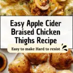 Apple Cider Braised Chicken Thighs feature juicy, tender chicken cooked in a savory and slightly sweet apple cider braising liquid with caramelized onions. This one-pan dish combines bold flavors and a delightful caramelized texture, perfect for a comforting weeknight dinner.