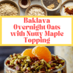Delightfully inspired by the flavors of baklava, this Baklava Overnight Oats recipe combines creamy non-dairy yogurt, old fashioned oats, chia seeds, and a spiced nut topping with pistachios, walnuts, and maple syrup. Enhanced with a touch of lime zest and cinnamon, this nourishing and refreshing plant-based breakfast is perfect for prepping ahead and enjoying a sweet, nutritious start to your day.