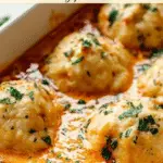 A comforting and hearty tomato soup paired with fluffy cheddar bay dumplings for a delightful meal. This recipe combines rich canned tomatoes and aromatic onions simmered to perfection, topped with cheesy biscuit dumplings brushed with flavorful butter sauce for a warm, inviting bowl of goodness.