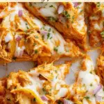 This Buffalo Chicken Pizza is a flavorful and easy-to-make dish featuring tender buffalo chicken, tangy blue cheese or ranch dressing, and delicious toppings like banana peppers and red onions. With a crispy garlic butter Parmesan crust, this pizza is perfect for a spicy, cheesy meal that everyone will love.