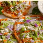 Once cooked, top the tacos generously with the remaining buffalo sauce, spoonfuls of the Greek yogurt ranch dressing, additional bleu cheese crumbles, diced red onions, and chopped lettuce. This final assembly brings freshness, sharpness, and extra flavor contrast that makes the Buffalo Chicken Smash Tacos Recipe truly unforgettable.