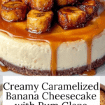 This Caramelized Banana Cheesecake with Rum Glaze is a decadent dessert combining a creamy, smooth cheesecake filling with a buttery graham cracker crust, topped with golden caramelized bananas and a rich, spiced rum glaze. Perfect for special occasions or any time you’re craving a luxurious and flavorful treat.