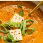 - Serve: Ladle the soup into bowls. Top with thin slices of silken tofu (if using), a sprinkle of cayenne pepper for heat, and scatter sliced scallions or chives on top. Serve warm and enjoy.