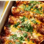 These Cheesy Beef Enchiladas with Red Sauce combine a savory ground beef and bean filling with melted Mexican cheese, all wrapped in soft flour tortillas and baked to perfection. The dish features a rich, mildly spicy enchilada sauce that keeps the enchiladas moist and flavorful, making it a comforting and satisfying meal perfect for family dinners or gatherings.