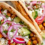 A delicious and hearty Chickpea Gyros recipe that features spiced and sautéed chickpeas served in warm pita bread with fresh veggies, creamy tzatziki sauce, and optional hummus and feta cheese. This vegetarian Mediterranean-inspired dish is perfect for a quick and flavorful meal.