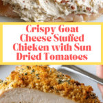 This Crispy Chicken with Goat Cheese & Sun Dried Tomatoes recipe features tender chicken breasts rolled with a creamy, flavorful goat cheese filling and topped with a crunchy panko breadcrumb crust. Baked to golden perfection, this dish combines tangy goat cheese, savory sun dried tomatoes, and aromatic herbs for an impressive yet easy-to-make main course perfect for weeknight dinners or entertaining guests.