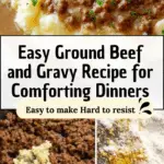 This classic Ground Beef and Gravy recipe features savory crumbled beef cooked to perfection with garlic and onion, then smothered in a rich, flavorful homemade gravy. Perfect served over creamy mashed potatoes, it makes a comforting and hearty meal that’s quick and easy to prepare on the stovetop.