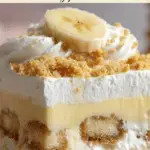 Once chilled, spread the remaining whipped topping over the wafer layer for a smooth, fluffy finish. Arrange thin banana slices on top to add a fresh, inviting look, then sprinkle wafer crumbs over the surface for that extra crunch and charming presentation. Now your Layered Banana Pudding with Graham Crackers Recipe is ready for the table!