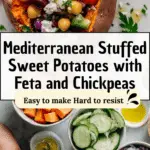 Mediterranean Stuffed Sweet Potatoes are a healthy, flavorful recipe featuring oven-roasted sweet potatoes filled with a vibrant mixture of chickpeas, fresh vegetables, olives, feta cheese, and herbs, all tossed in a zesty lemon-oregano dressing. This dish is perfect for a nutritious lunch or light dinner that combines sweet, tangy, and savory flavors with a Mediterranean flair.