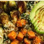 You can freeze the roasted Brussels sprouts, butternut squash, and quinoa mixture separately for up to 3 months. Just make sure to cool everything completely before freezing. Avoid freezing fresh kale or avocado—add fresh greens and toppings when you’re ready to eat.