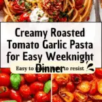 This Roasted Tomato and Garlic Ricotta Pasta recipe features small tomatoes and garlic cloves roasted to perfection, blended into a rich, flavorful sauce tossed with pasta and garnished with your choice of toppings such as toasted breadcrumbs, pine nuts, or vegan ricotta. It’s an easy, comforting dish perfect for a quick weeknight dinner with a burst of fresh Italian-inspired flavors.