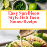 This San Diego Style Fish Taco Sauce is a creamy, tangy, and smoky chipotle crema perfect for drizzling over fish tacos. Made with sour cream and Greek yogurt, flavored with fresh lime juice, chipotle peppers in adobo, garlic, and cilantro, this sauce adds vibrant flavor and a touch of heat. It can also double as a dip or a spread for burgers.