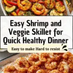 A vibrant and healthy Shrimp and Vegetables Skillet featuring perfectly marinated shrimp sautéed with fresh zucchini, yellow squash, red bell pepper, and purple onion. This quick and easy recipe is packed with flavor, making it an ideal weeknight dinner option that balances protein and vegetables in one colorful dish.