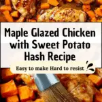 For a dinner party, you can plate individual portions by spooning the sweet potato hash onto the base of each plate and layering a maple-glazed chicken cutlet on top, finishing with a drizzle of extra glaze and a few garnishes. Alternatively, serve the skillet right on the table for a warm, rustic presentation that invites everyone to dig in family-style—it’s cozy and satisfying, perfect for sharing.