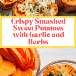 Smashed Sweet Potatoes with Herbs and Garlic is a delicious and easy-to-make side dish where thick slices of sweet potatoes are coated in a fragrant butter, garlic, and rosemary mixture, baked until tender, then smashed and baked again to achieve a crispy texture. Optionally topped with Parmesan cheese, this recipe offers a flavorful, comforting dish perfect for any meal.