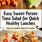 A nutritious and flavorful Sweet Potato & Tuna Salad featuring tender boiled sweet potatoes, crisp red pepper, celery, pickles, and red onion combined with protein-rich tuna. Tossed in a tangy mayonnaise and Dijon mustard dressing, this gluten-free, paleo, and Whole30-friendly salad makes a perfect quick lunch, post-workout meal, or easy dinner option, ready in just 30 minutes. It’s great for meal prep and can be served immediately or chilled for later.