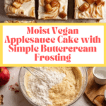 This Vegan Applesauce Cake is a moist, flavorful dessert that’s perfect for any occasion. Made without eggs or dairy, it uses applesauce and a blend of warm spices to create a tender crumb and delightful aroma. Topped with creamy vegan buttercream frosting and optional caramelized apples for decoration, this cake is both comforting and indulgent, ideal for a plant-based diet or anyone seeking a delicious dairy-free treat.