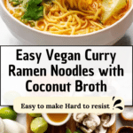 This Vegan Curry Ramen Noodles recipe is a flavorful, creamy, and satisfying dish featuring a rich coconut curry broth infused with red curry paste, curry powder, garlic, and ginger. Loaded with fresh vegetables and tender ramen noodles, this comforting vegan meal is perfect for a cozy dinner and easily customizable to suit your spice preferences.